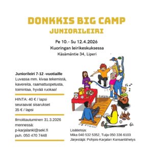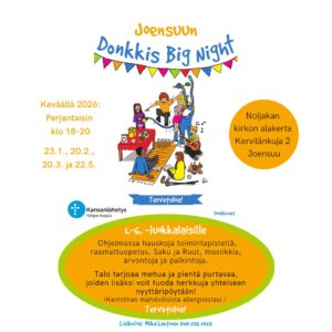 Alakoululaisten toimintaillat ilmoitettuina perjantai-iltoina. Ohjelmassa hauskoja toimintapisteitä, raamattuopetus, Saku ja Ruut, musiikkia, arvontoja ja palkintoja sekä nyyttärit.
